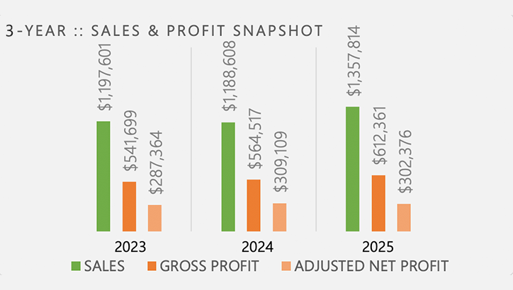 • FY2025 adjusted net profit: $302,376, with a strong 22% net margin