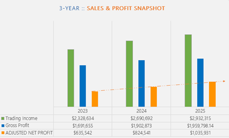 • $3 Million Revenue: 25.9% from 2023 – 2025